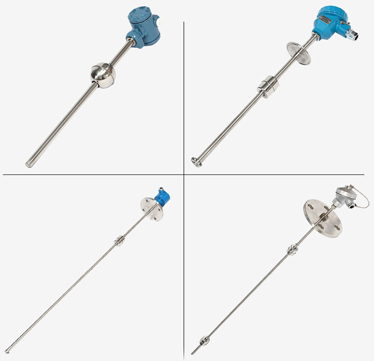 浮球液位變送器由液位傳感器和電流轉(zhuǎn)換器兩部分組成,磁性浮球比重小于0.5,可漂浮于液面之上并沿導桿上下移動,導桿內(nèi)裝測量元件,在外磁場作用下產(chǎn)生正比于液位變化的電阻信號,浮球與液位同步變化,控制干簧管吸合斷開,從而使傳感器內(nèi)電阻成線性變化,再由轉(zhuǎn)換器將電阻的變化轉(zhuǎn)換成4~20mA標準電流信號并疊加數(shù)字信號輸出。能對開口、密閉容器或地下池槽里的介質(zhì)液位在儀表控制室內(nèi)進行顯示、報警和控制。被檢測的介質(zhì)可為水、油、酸、堿、工業(yè)污水等導電及非導電液體,并能克服液體的泡沫所造成的假液位的影響。廣泛適用于煉油、化工、造紙、食品及污水處理等行業(yè)。