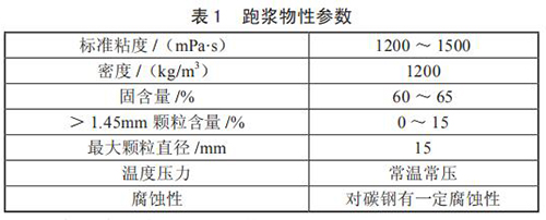 對(duì)跑漿進(jìn)行分析后發(fā)現(xiàn),跑漿是一種由煤漿和一些雜質(zhì)混合而成的半流體物質(zhì),當(dāng)氯氣流量計(jì)使用煤倉中煤堆中上部煤時(shí),由于煤質(zhì)較好,跑漿中小煤塊*少,性質(zhì)同正常煤漿,只是固含量稍高;而使用煤堆底部的煤時(shí),煤質(zhì)差氯氣流量計(jì)研磨不充分,跑漿中含有約 15% 的小煤塊,分析后的跑漿物質(zhì)參數(shù)如表 1 所示。
