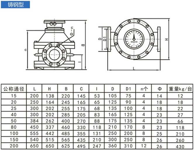3、計量精度高,適用于高粘度介質(zhì)流量的測量,但不適用于含有固體顆粒的流體(固體顆粒會將齒輪卡死,以致無法測量流量)。如果被測液體介質(zhì)中夾雜有氣體時,也會引起測量誤差。